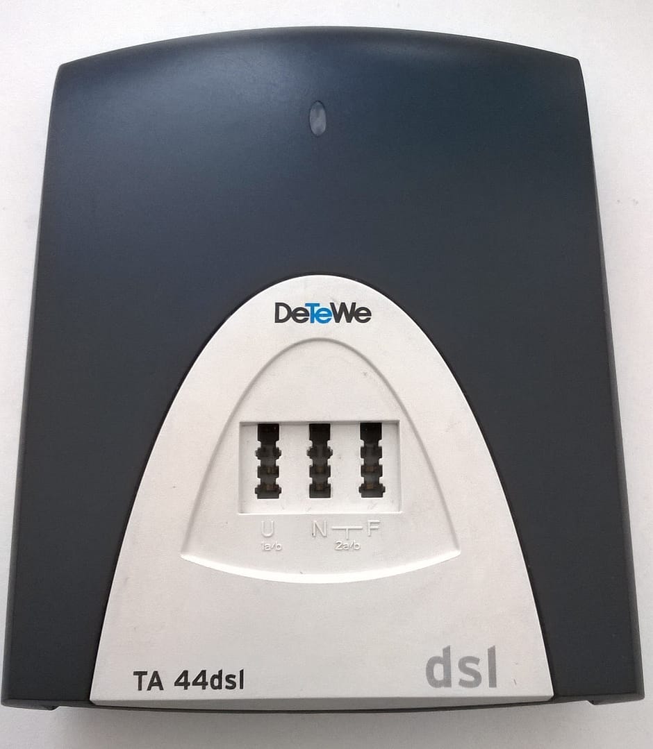 Der Terminal-Adapter TA 44dsl ist eine ISDN-Telefonanlage mit einem integrierten ADSL-Modem, mit der Sie bis zu 3 analoge Geräte, beispielsweise 2 Telefone und ein Fax-Gerät, mit einem ISDN-Basisanschluss bzw. einem ADSL-Anschluss/Splitter verbinden können.